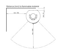 Avstand til brannmur: 5 cm bak / 30 cm til siden